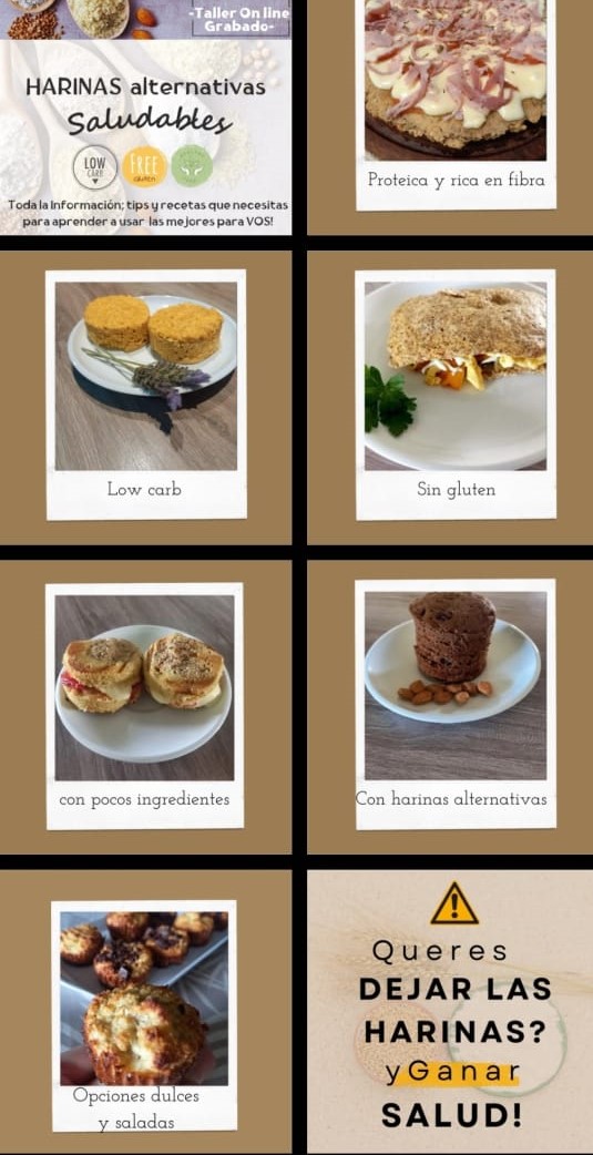 (Te enseñamos a cocinar con harinas de coco, lino, quinoa, algarroba, maní, almendras, sésamo; sarraceno, etc) y con las mejores opciones para endulzar!