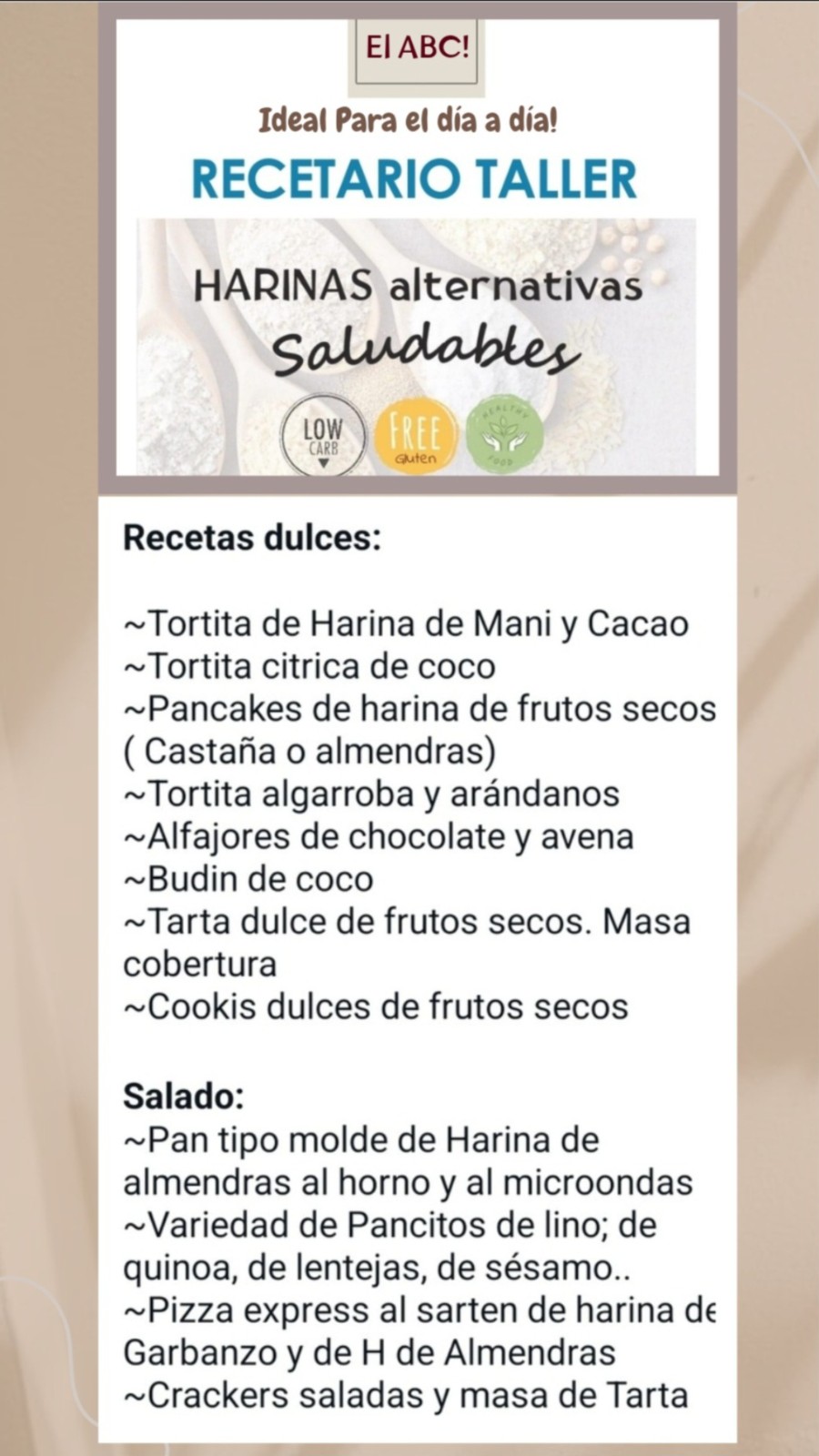 El Taller de Harinas alternativas saludables y alimentación antiinflamatoria ➕