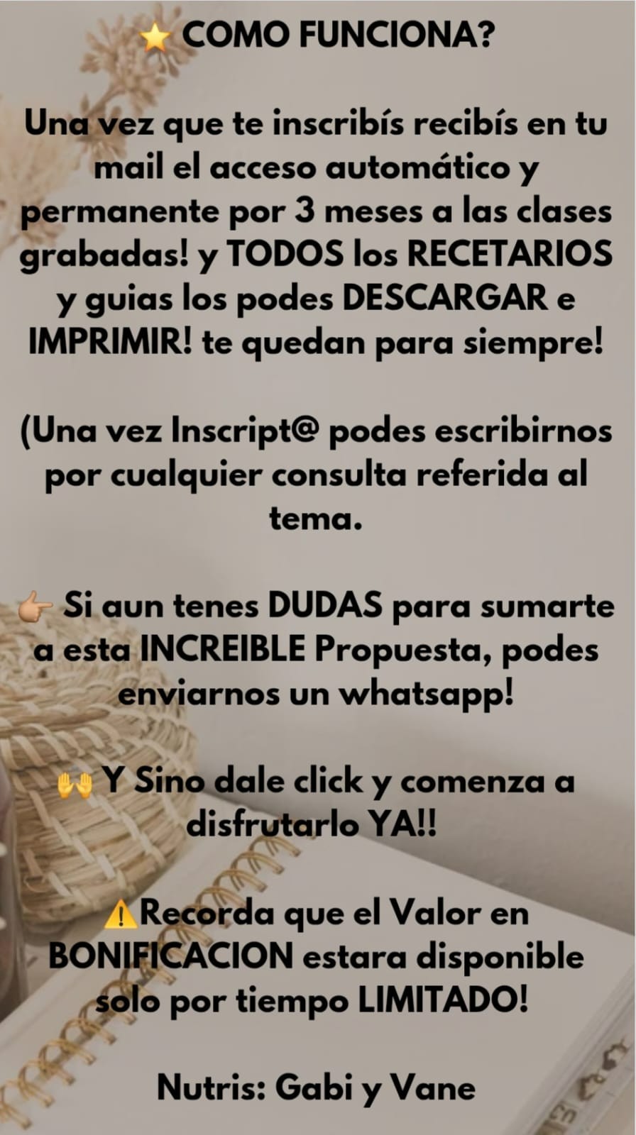 ⚠️ Duración: tenes 3 meses desde tu inscripción para acceder las veces que quieras a ver las clases grabadas.