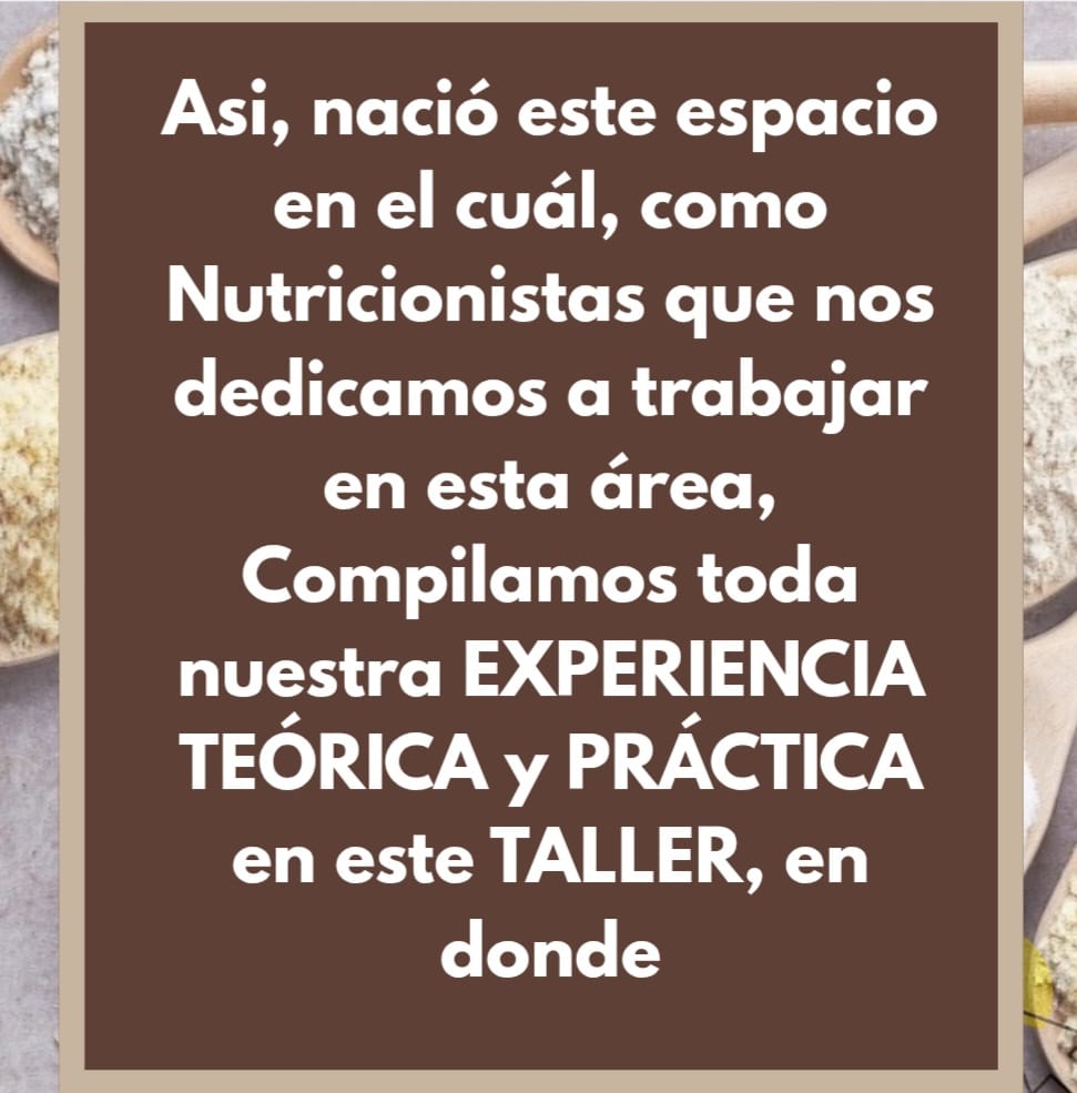 IMPORTANTE: el taller y las clases son con enfoque NUTRICIONAL, No Gastronomico.